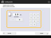 Si está instalada la unidad de recorte, puede recortar el borde de los cuadernillos. Esta opción permite ajustar la anchura de recorte.