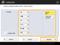 2 | Seleccione el tamaño de papel. ![]() ![]() Para obtener información sobre los tamaños de papel mostrados cuando se pulsa <Otro tamaño>, consulte Papel disponible. |