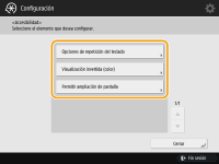 Funciones de accesibilidad para usuarios que tienen problemas de visión o para realizar operaciones en la pantalla táctil
