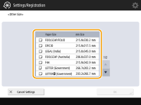 1 | Sélectionnez la cassette à papier dans laquelle le papier est chargé et appuyez sur <Format personnalisé>. |