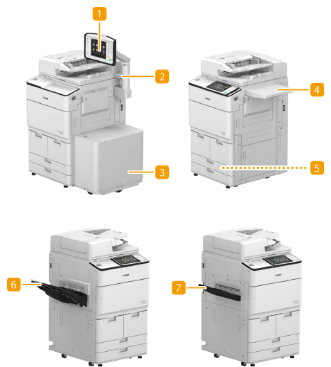 Para informações sobre a combinação de opções que podem ser instaladas na máquina, entre em contato com seu revendedor autorizado Canon local. Algumas das configurações podem não ser exibidas, dependendo da configuração do equipamento opcional instalado na máquina. |