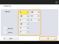 1 | Press <Custom Size>. ![]() You can specify the paper size as <Free Size>, which eliminates the need to enter the paper size setting. Specify <Free Size> when you load paper of unknown size to use for copying or when the paper size is already registered in the printer driver. |