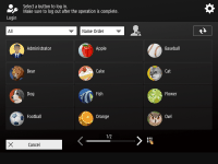 Press your user name. If a PIN code has been set, enter your PIN code and press <OK>  <Log In>.