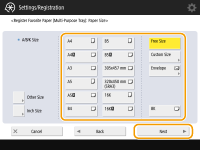 2 | Select the paper size. ![]() ![]() For information on the paper sizes displayed when <Other Size> is pressed, see Available Paper. |