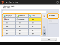 Destinations registered in one-touch buttons can be combined into a group and registered as a single destination. For details, see Registering a Group in a One-Touch Button. To change or delete the information of destinations registered in one-touch buttons, see Editing the Registered Destinations in One-Touch Buttons. Destinations stored in one-touch buttons also appear in the Local Address Book. |