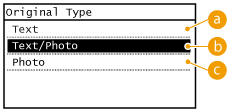 You can select the image quality for the scan depending on the document type, such as text-only documents, documents with charts and graphs, or magazine photos.