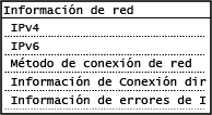 Muestra las opciones de configuración de red, como la dirección IP del equipo, así como el estado, como por ejemplo el de las comunicaciones de red inalámbrica.