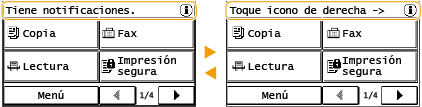 Cuando aparezca <Tiene notificaciones.> o <Toque icono de derecha ->>