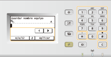 o <#> cuando el tipo de texto introducido sea <A> o <a> para visualizar símbolos introducibles en la pantalla. Pulse los símbolos que desee introducir. |