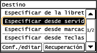 Antes de pulsar <Destino> en el paso 1, puede pulsar  /  para alternar los destinos especificados. Visualice un destino que desee eliminar y pulse  .