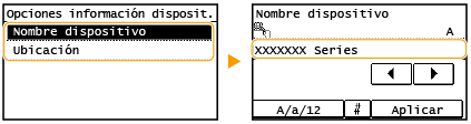 Introduzca el <Nombre dispositivo> o la <Ubicación> (