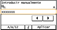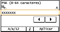 Introduzca el SSID utilizando las teclas numéricas y pulse <Aplicar>. Introducción de texto