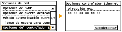 Si conecta el equipo a un concentrador de conmutación o a un puente podrían producirse errores de conexión aunque la dirección IP esté configurada correctamente. Este problema puede solucionarse configurando un intervalo de tiempo antes de que el equipo inicie la comunicación. Configuración de un tiempo de espera para conectarse a una red