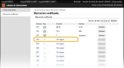 Puede eliminar un elemento registrado haciendo clic en el botón [Eliminar].