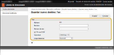 Para registrar el destino de fax (imageRUNNER 2206iF)