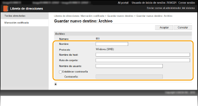 Podrá registrar o editar la libreta de direcciones del equipo utilizando el ordenador. Especifique aquí el destino de la carpeta compartida.
