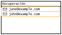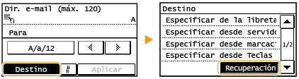 Puede seleccionar un destino entre los tres últimos destinos utilizados. Cuando se especifica un destino utilizado anteriormente, el equipo también configura las mismas opciones de lectura utilizadas la última vez que se enviaron documentos a dicho destino como, por ejemplo, la densidad.