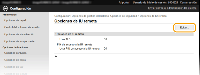 Marque la casilla de verificación [Usar PIN de acceso a la IU remota] y establezca el PIN.