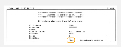 No pudo enviarse un fax porque el equipo del destinatario no respondió debido a que la línea estaba ocupada o por otros motivos.