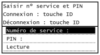 Lorsque l'écran de connexion s'affiche, utilisez la procédure ci-dessous pour saisir l'ID de service et le PIN.