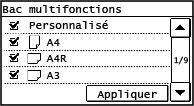 Vous pouvez régler l'appareil afin qu'il affiche uniquement les formats de papier fréquemment utilisés dans l'écran de sélection.