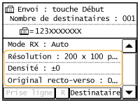 <Oui>.Si vous avez indiqué Composition groupée à l'étape 2, "XX destinataire(s)" s'affiche sur l'écran. Appuyer sur <Nombre de destinataires> affiche les destinataires enregistrés dans le groupe.