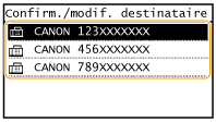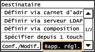 Mettre l'appareil hors tension ou régler <Limiter nouveaux destinataires> sur <Activé> a pour effet d'effacer les destinataires récents et de désactiver cette fonction. Restriction des destinataires disponibles