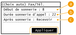 En cas de sélection de l'option <(Choix auto) Fax/Tél.>