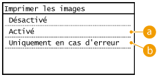 Sélectionnez <Activé> ou <Uniquement en cas d'erreur>