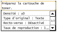 L'appareil affiche un message lorsqu'une cartouche de toner est presque vide. Notez que la qualité d'impression se dégrade si vous continuez d'imprimer sans intervention de votre part. Vous pouvez examiner le niveau de toner restant sur l'affichage.