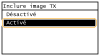 Lorsque vous sélectionnez <Activé> ou <Uniquement en cas d'erreur>, il est possible d'insérer une partie du fax dans le rapport. Appuyez sur <Inclure image TX> pour le régler sur <Activé>. Toutefois, les tâches d'envoi provenant du pilote de fac se sont omises dans ce rapport.