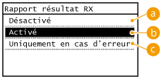 Sélectionnez cette option pour imprimer un rapport de réception seulement si une erreur se produit au cours de la réception du document.