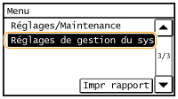 Indiquez le code ou le code PIN des seuls administrateurs bénéficiant des droits d'accès aux <Réglages réseau> et aux <Réglages de gestion du système>. Le code correspond à <ID administrateur système> et le code PIN à <PIN administrateur système>. Vous pouvez également mettre en mémoire le nom d'un administrateur.