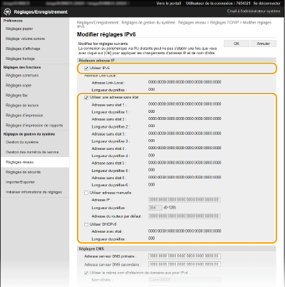Vérifier si les réglages sont correctsAssurez-vous que l'écran de l'IU distante s'affiche sur votre ordinateur avant d'utiliser l'adresse IPv6 de l'appareil. Démarrage de l'IU distante