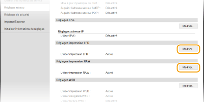 Cliquez sur [Modifier] dans [Réglages impression LPD] ou [Réglages impression RAW].
