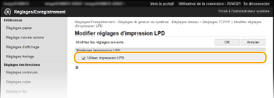 Cochez la case pour imprimer via LPD. Si tel n'est pas le cas, désactivez cette case. [Utiliser impression RAW]