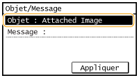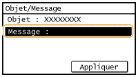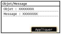 Saisissez l'objet à l'aide des touches numériques et appuyez sur <Appliquer>.