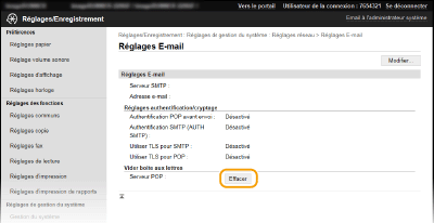 Pour envoyer des e-mails directement depuis l'appareil, vous devez effectuer plusieurs opérations préparatoires, notamment la définition des paramètres du serveur de messagerie. Définition des paramètres de numérisation (envoi d'e-mails)