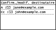 / pour consulter, un à un, les destinataires que vous avez spécifiés. Affichez le destinataire à supprimer et appuyez sur . |