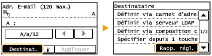 Si vous avez sélectionné <E-mail> à l'étape 2