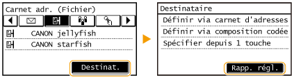 Mettre l'appareil hors tension ou régler <Limiter nouveaux destinataires> sur <Activé> a pour effet d'effacer les destinataires récents et de désactiver cette fonction. Restriction des destinataires disponibles