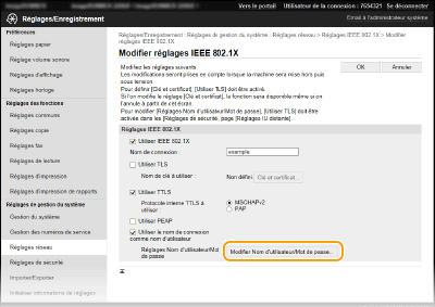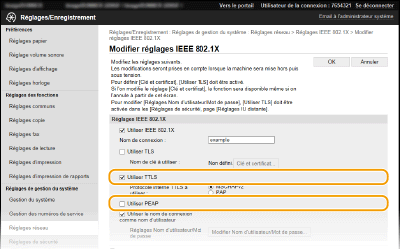 Cochez la case [Utiliser TTLS] ou [Utiliser PEAP].