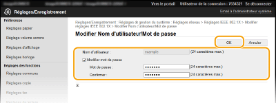 Saisissez le nom d'utilisateur dans la limite des 24 caractères alphanumériques autorisés. [Modifier mot de passe]