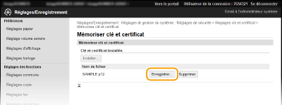 Cliquez sur [Mémoriser clé et certificat] ou [Mémoriser certificat CA].