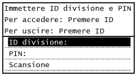 Alla visualizzazione della schermata di accesso, attenersi alla procedura seguente per immettere l'ID reparto e il PIN.