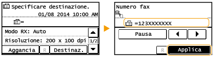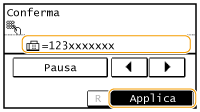 Toccare <Pausa> per inserire una pausa al termine del numero di fax se necessario.