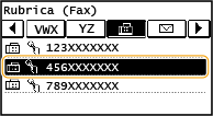 Visualizza tutte le destinazioni registrate nella Rubrica. Per i contrassegni all'interno delle destinazioni, vedere le spiegazioni di seguito.