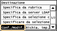Selezionare <Destinaz.>  <Conf./Modif.>.