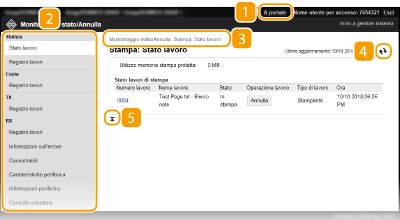 Visualizza la pagina [Monitoraggio stato/Annulla]. Per i documenti in attesa, è possibile verificare lo stato/storico o annullarne l'elaborazione.