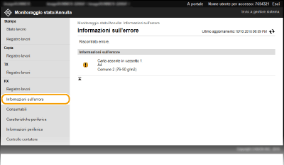 Se si verifica un errore, viene visualizzata questa pagina facendo clic sul messaggio visualizzato in [Informazioni sull'errore] nella Pagina portale (pagina principale).
